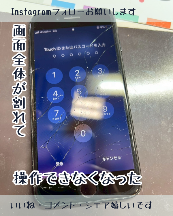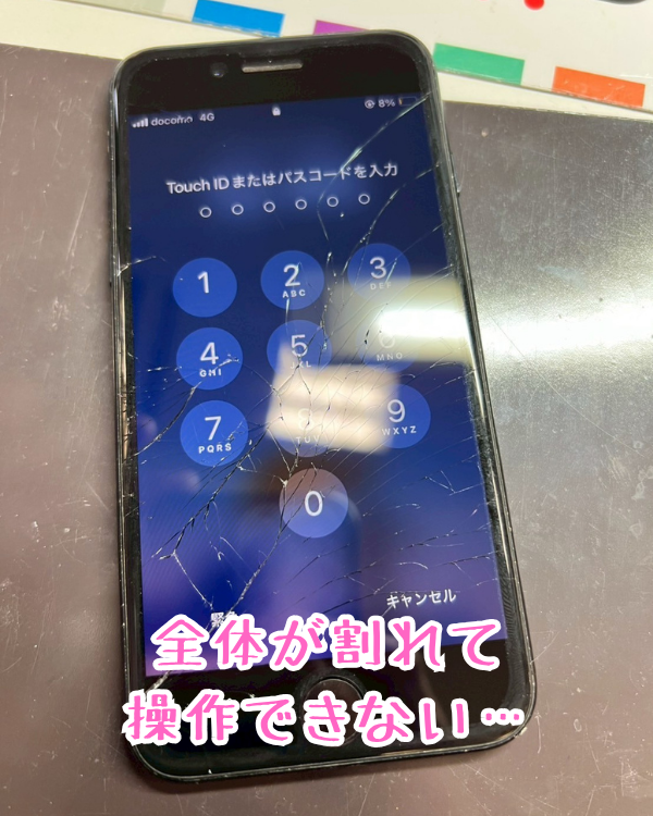 画面全体が割れてしまっています。操作もできていない状態でした。
