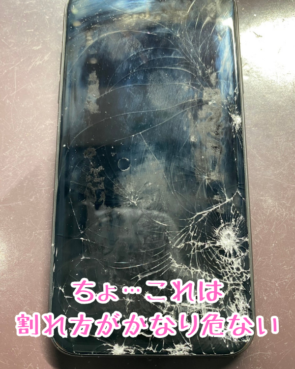 お写真をご覧ください…。ベキベキにガラスが割れておりこれはかなりひどい割れ方の部類に入ります。