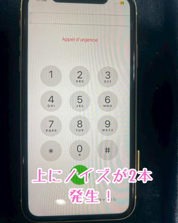 今回お持ち込みいただいたのは、iPhone11の液晶ノイズ不良です。