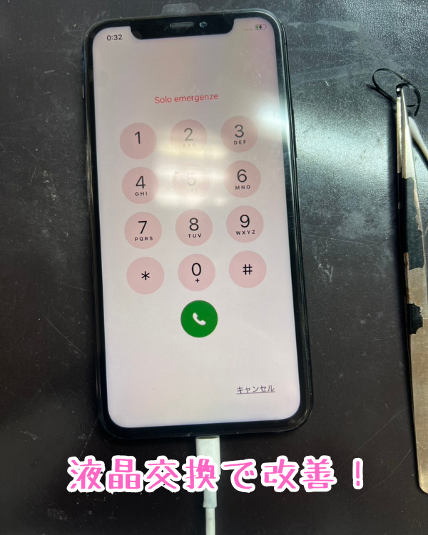 iPhone11の液晶ノイズ修理。線状の液漏れも即日で解消できます