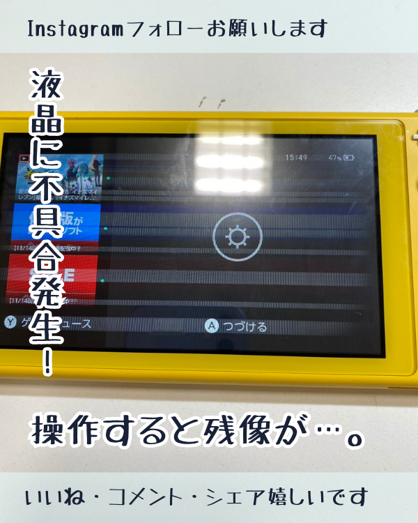 操作すると液晶に残像が…。スイッチライトの修理もすぐ修理します!