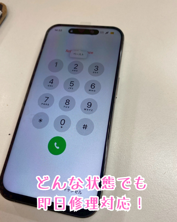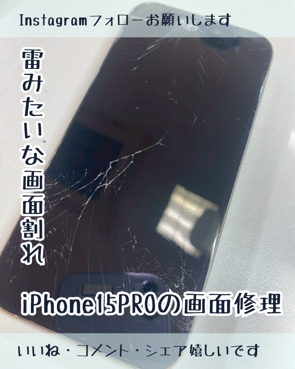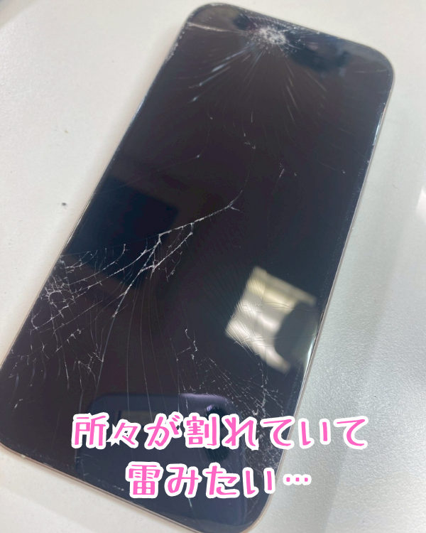 iPhone15proの画面割れ!割れ方が雷みたいに…。どんな状態でも即日対応!