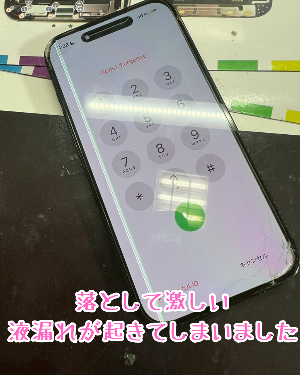 画面が砕け、液漏れと高速振動…!絶望的な破損