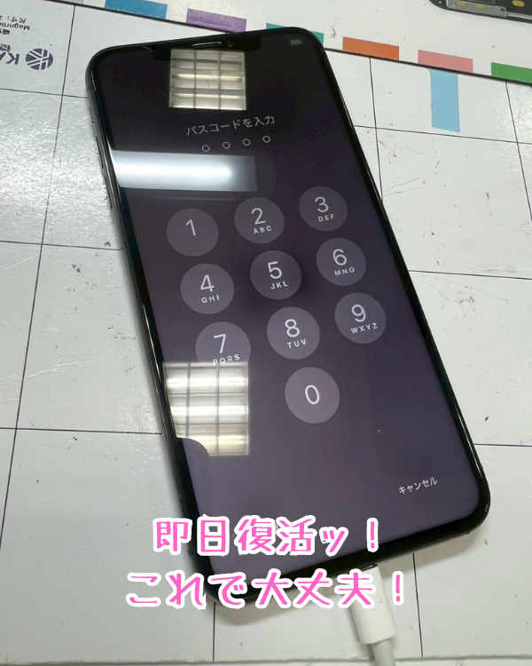 これで、数日後に届く新機種を待つ間もストレスなく連絡が取れますし、何より重要な「データ移行の操作」が確実に行えるようになりました。もちろん即日修理ですので、お預かりしたその日のうちに操作可能な状態でお返ししております。